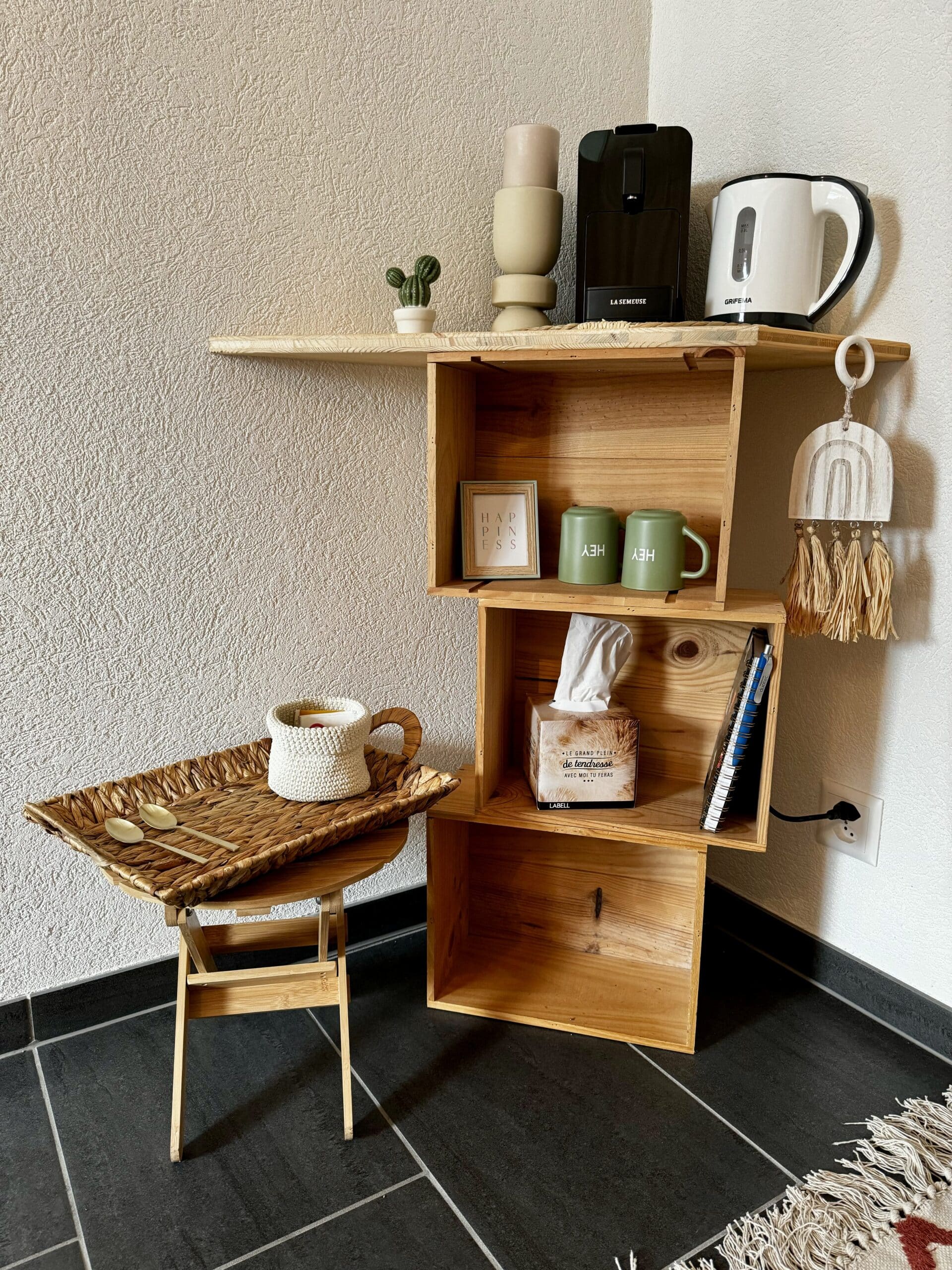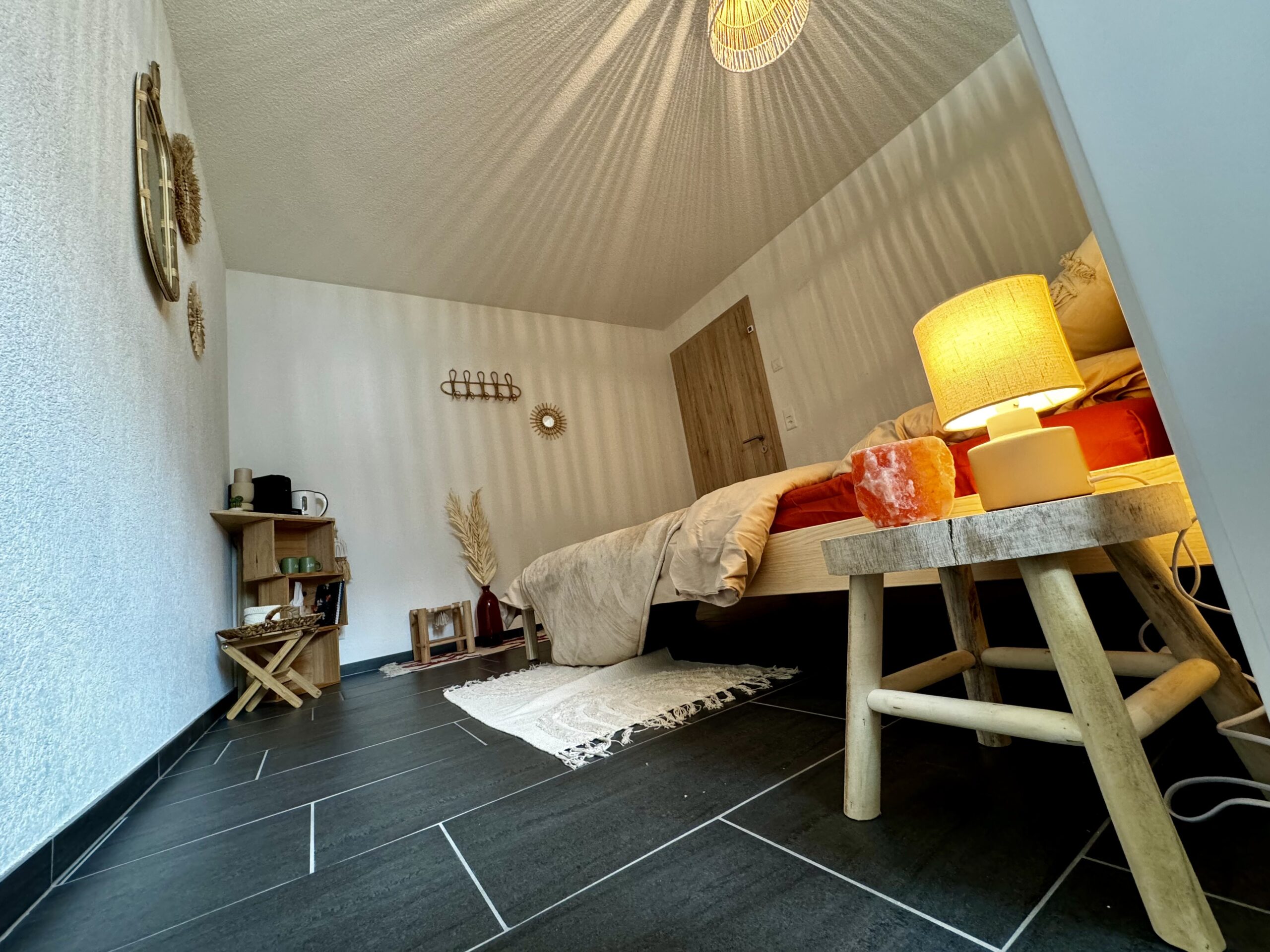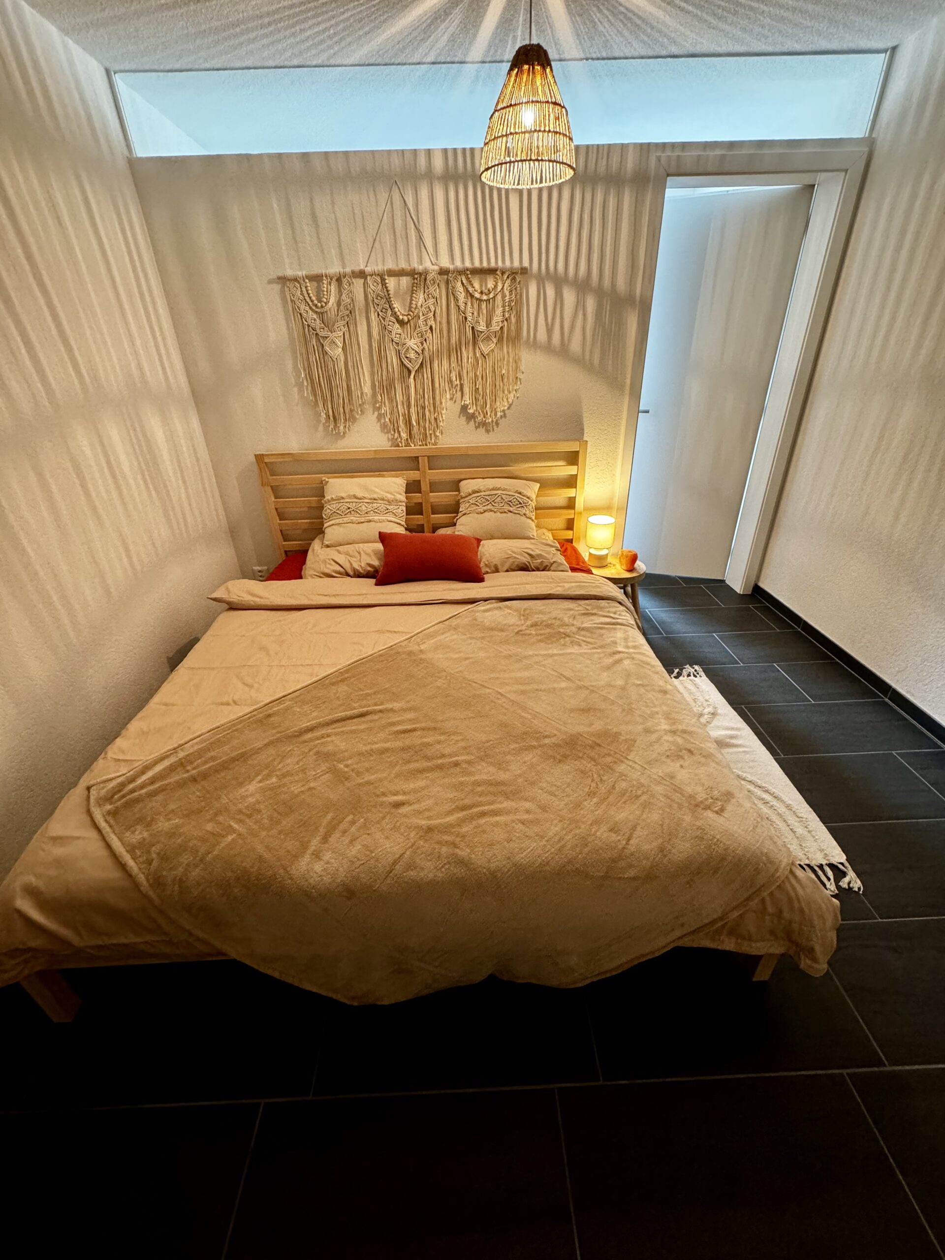 Notre chambre d’hôtes vous accueille dans une ambiance chaleureuse et bohème, où les tons naturels et les matières douces créent une atmosphère apaisante. Avec sa décoration soignée mêlant bois, macramé et fibres naturelles, elle invite au repos et à la détente. Vous y trouverez tout le confort nécessaire, dans un cadre intime et lumineux, idéal pour une parenthèse relaxante à St-Ursanne.